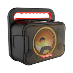 Make every occasion a party with this 810 Sonix Maxx speaker from the fantastic brand Motorola. The speaker is even suitable for a pool party, because this speaker is waterproof (IPX4)! This party speaker gives an impressive sound with which you can enjoy your favourite music until the late hours. With the Sonic Maxx 810 you can listen to your favourite playlist for up to 11 hours with LED light that moves along with the beat. Want to party on even longer, without worrying about battery life? Then you can also use the speaker without LED and party on for up to 20 hours! Connect the speaker to your phone or tablet and play songs via Bluetooth 5.0. This wireless speaker is easy to take with you wherever you go because it is equipped with a lever.