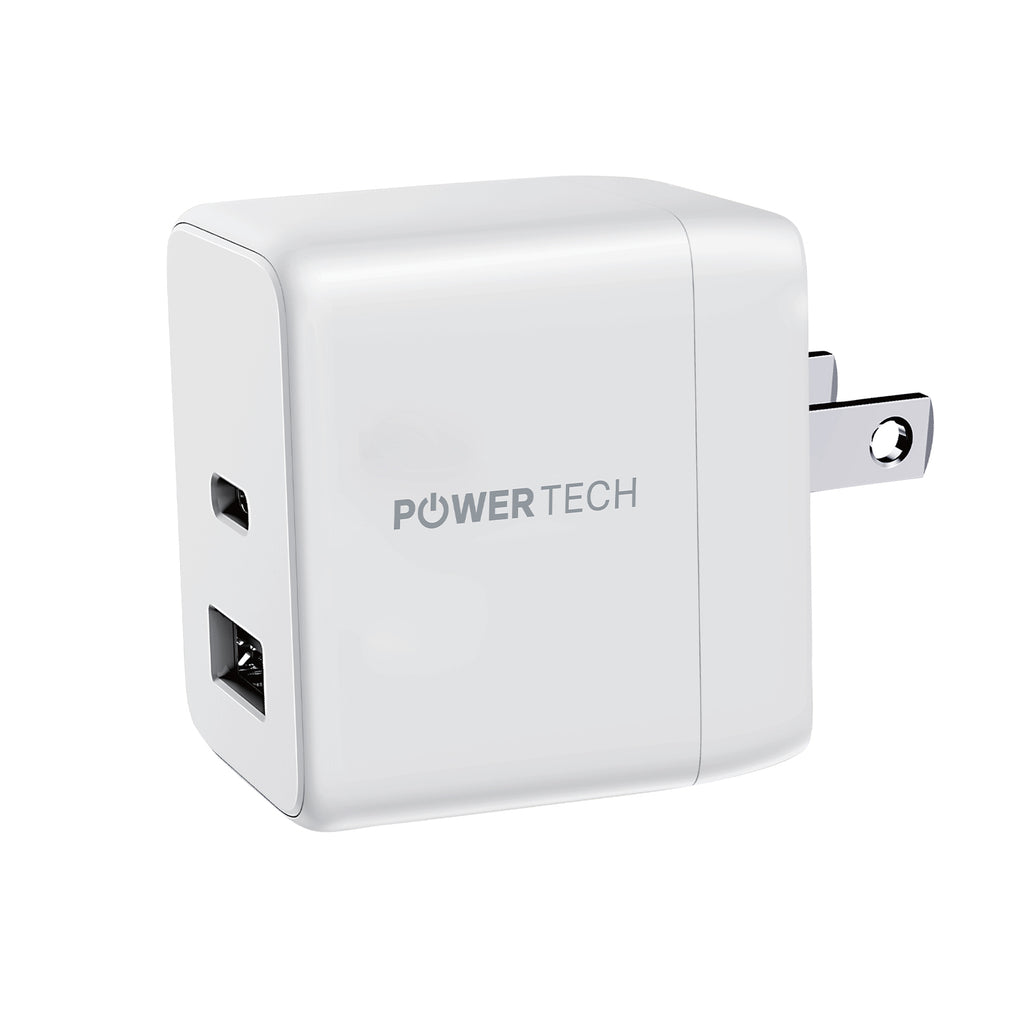 Powertech PD 20W Dual-Port USB-A & USB-C Wall Charger - White