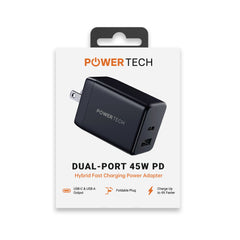 Powertech PD 45W Dual-Port USB-C Wall Charger - Black