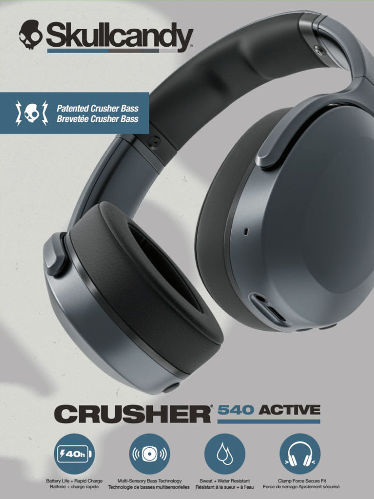 Meet Crusher 540 Active, the ultimate active-use headphones designed to help you get in the zone to enhance your workout. Feel every beat with Crusher's adjustable sensory bass, pushing you to go harder when the workout gets tough. With a sweat and water-resistant nano-coating, Crusher 540 Active stays durable through your most intense sessions. Plus, its breathable fabric earpads keep you cool and comfortable when things heat up. Crush every beat, crush every workout.