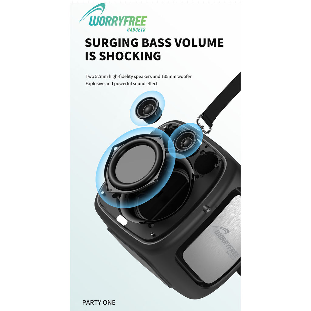 WorryFree Party One Wireless 80W Bluetooth Speaker With 2 Microphones - Black