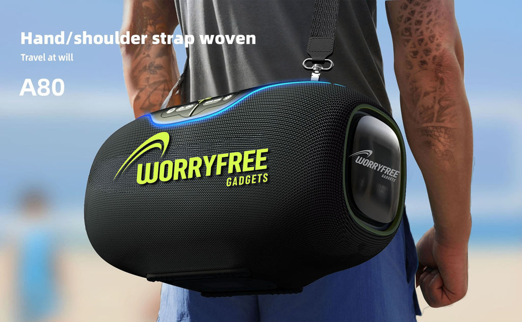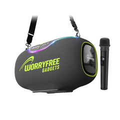 Take the stage with the Worryfree Gadget's WA80! Delivering a powerful 350W output, this IPX6 waterproof wireless speaker is perfect for parties, karaoke, and outdoor adventures. With Bluetooth connectivity, a built-in handle for portability, and a wireless microphone for performances, it's designed for versatility and ease of use. Enjoy up to 24 hours of playback, multiple input options like AUX, USB, and TF card, and the ability to pair two WA80s via TWS for a true stereo experience. Rugged, reliable, and ready for any event, the WA80 ensures the music never stops!More from this collection