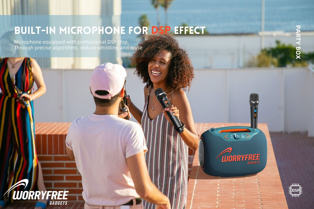 Worryfree WPB2 Party Box Wireless Bluetooth Speaker With Two Microphones & Tripod - Black