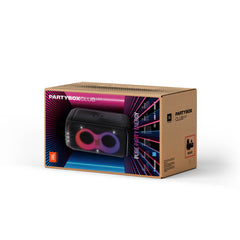 The JBL PartyBox Club 120 turns any space to party, and vibe. Powerful JBL Pro Sound fills the air while an entrancing lightshow of starry lights, cool light trails, and strobe effects syncs to your beat. Instantly pair any Bluetooth device and stream your favorite party playlist, or use the mic and guitar inputs to share your own sound. Either way, you can steer the party’s flow with fun interactive party effects using the JBL PartyBox app. A folding ergonomic handle makes the PartyBox Club 120 easy to take with you anywhere, and the splash-proof construction means it won’t be troubled by a little rain. It delivers up to 12 hours of playtime—and if the party’s still flowing by then, just swap out the replaceable battery and keep the music and lights going strong. For an even bigger time, stereo pair two JBL PartyBox Club 120s for a wider soundstage, or use the JBL PartyBox app to connect multiple JBL Auracast-enabled speakers wirelessly. Roll up to the party with the JBL PartyBox Club 120