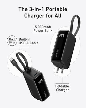 Experience the convenience of portable power with the Anker Power Bank. Equipped with a 20,000mAh capacity and a 30W PD fast charge capability, this compact yet powerful charger ensures your devices stay powered up on-the-go. Its built-in USB-C cable offers hassle-free direct charging, while the intelligent color digital display keeps you informed of power levels and charging status. Perfect for your mobile phone or tablet, the Anker Power Bank is the travel-friendly solution to your charging needs.