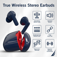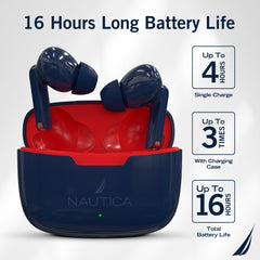 Nautica True Wireless Stereo Earbuds With Charging Case T200 - Navy/Red