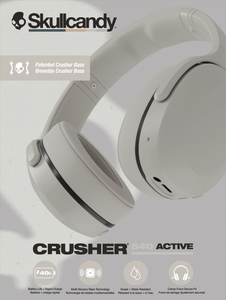 Meet Crusher 540 Active, the ultimate active-use headphones designed to help you get in the zone to enhance your workout. Feel every beat with Crusher's adjustable sensory bass, pushing you to go harder when the workout gets tough. With a sweat and water-resistant nano-coating, Crusher 540 Active stays durable through your most intense sessions. Plus, its breathable fabric earpads keep you cool and comfortable when things heat up. Crush every beat, crush every workout.