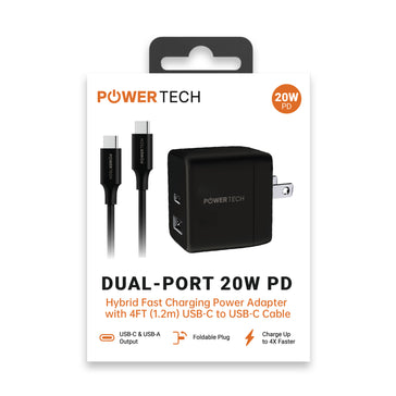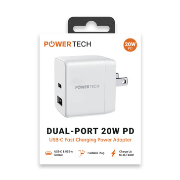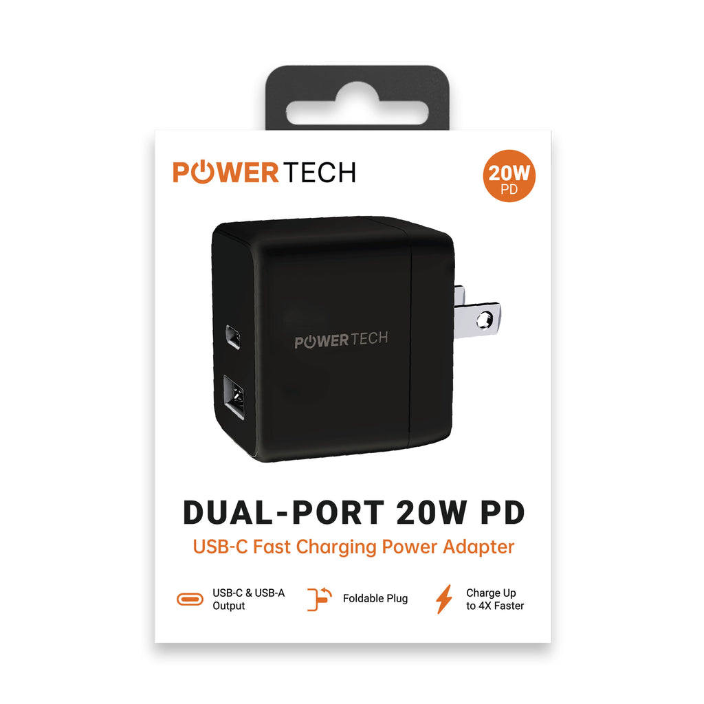 Powertech 20W PD Dual-Port USB-A & USB-C Wall Charger - Black