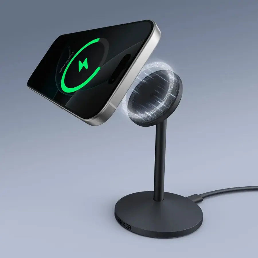 Anker MagGo iPhone 16 MagSafe-Compatible Wireless Charger Stand, 15W Fast Magnetic Wireless Charging Station, Qi2 Certified 360° Charger, for iPhone 16/15/14/13/12 Series and AirPods