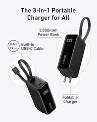 Anker 5K mAh 30W Fusion Power Bank W/ Built-In Usb-C Cable & Digital Display - Black