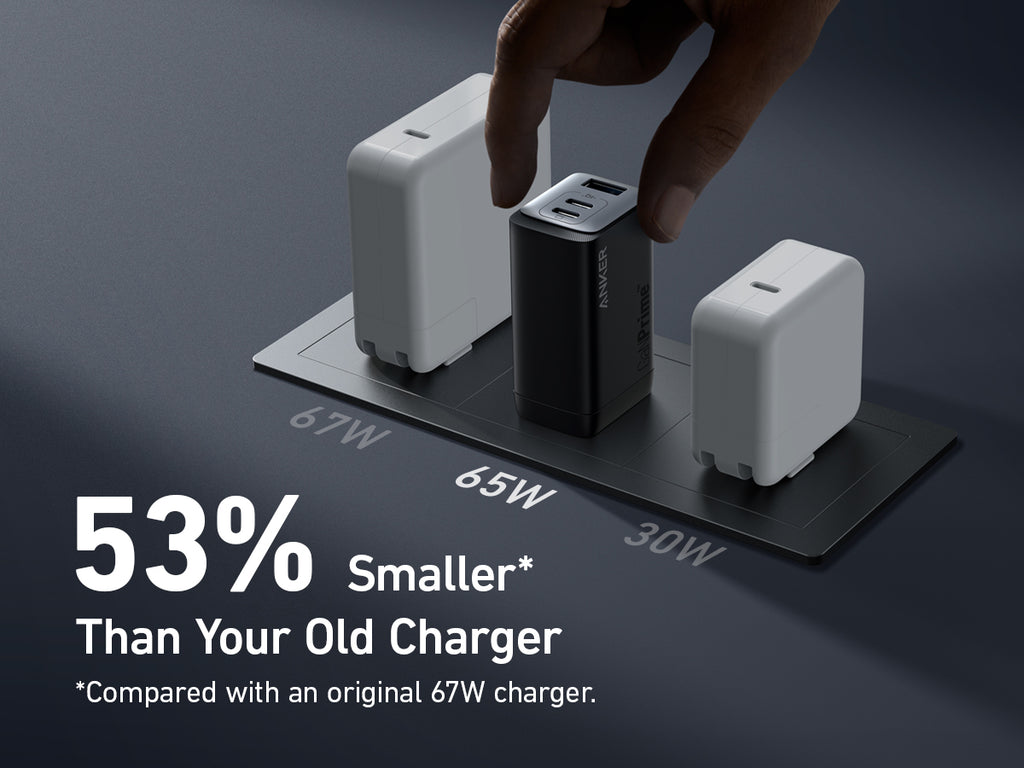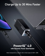 Anker 735 GaNPrime 65W 3-Port Wall Charger (2 USB-C, 1 USB-A) - Black