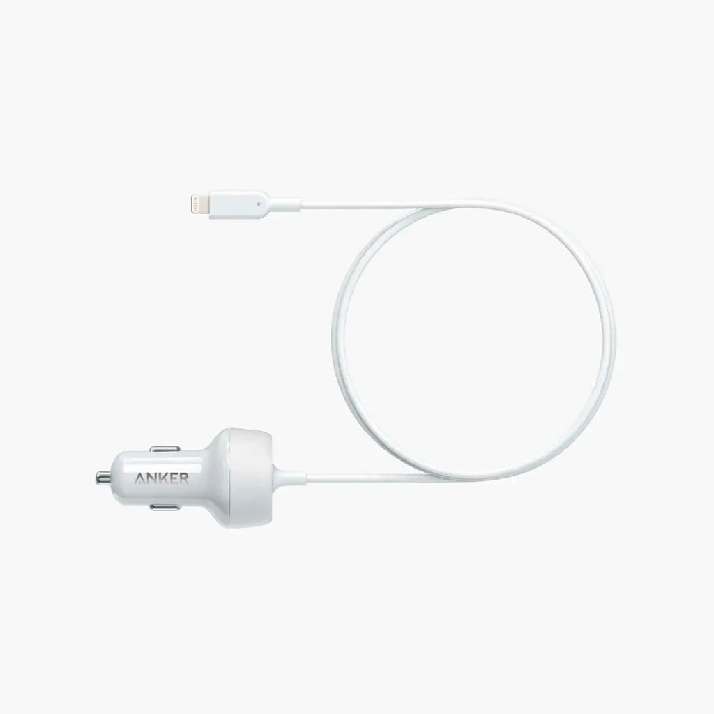 Anker Powerdrive 2 Elite 24W Car Charger w/ Hardwired 3' Lightning Connector - White