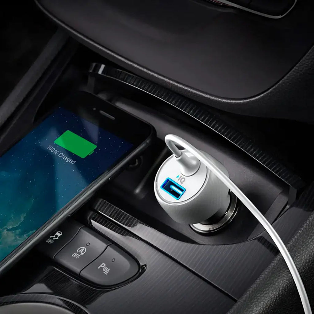 PowerDrive 2 Elite with Lightning connector is a premium car charger that shifts charging into high-gear. PowerDrive 2 Elite is equipped with Anker's exclusive PowerIQ technology to deliver the optimum charge, every time you drive. With a built in MFi-certified lightning connector, charge your iPhone on any trip without worrying about bringing a cable.
