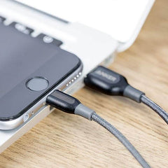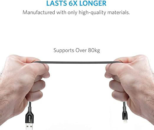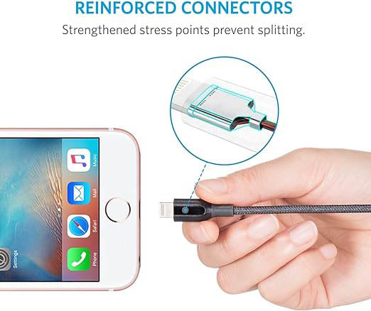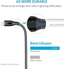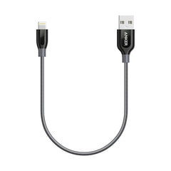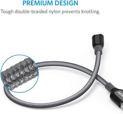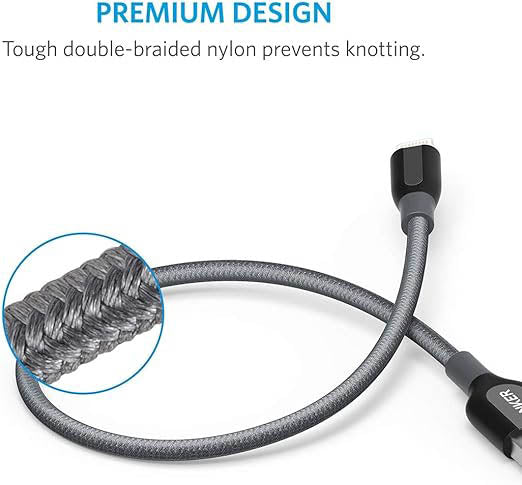 Introducing the Anker Powerline+ 1ft Lightning Cable in Space Gray, for iPhone devices. This cable boasts faster and safer charging, backed by advanced technology from Anker, America's Leading USB Charging Brand, trusted by over 10 million users. Reinforced with bulletproof aramid fiber, it's 5X more durable than conventional cables, enduring over 5000 bends without damage. With wide diameter wires and reduced cord resistance, it enables the fastest possible charge speed via any USB charger. Plus, backed by an 18-month warranty and easy-to-reach customer support, Anker ensures reliability and peace of mind with every purchase.