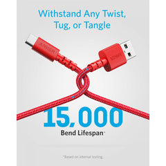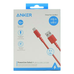 Anker's PowerLine Select+ USB-A to USB-C cable charges phones and tablets at high speed. Offers SuperSpeed transfer of 5 Gbps—transfer an HD movie in under 5 seconds. The double-braided nylon exterior, toughened aramid fiber core and laser-welded connectors equip PowerLine Select+ with superior toughness from end-to-end.