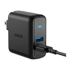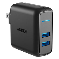 Deliver a stable charge to select mobile devices with this black Anker PowerPort Elite two-port wall charger. The included 3-foot PowerLine Select+ USB-A-to-Lightning cable offers easy access to wall outlets, while the 24W output powers your devices swiftly. This Anker PowerPort Elite two-port wall charger has a compact design with a folding plug for increased portability.