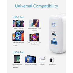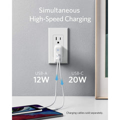 Anker Powerport PD+ 2 Port Wall Charger -Fast Charging with Power IQ Technology - White