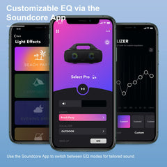 Pump up the volume with the Soundcore Select Pro Bluetooth Speaker. Powerful stereo sound with BassUp technology fills the room with sound, even in the great outdoors. Built-in LEDs blink in time to the beat to create a fun light show. With up to 16 hours of playtime, the party can keep going all night long. And, with an IPX7 waterproof rating, you can even take the party poolside.