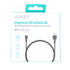 Aukey USB-A to Lightning 0.9M Nylon Braided MFI Cable - Black