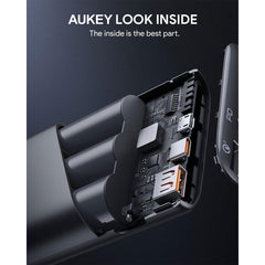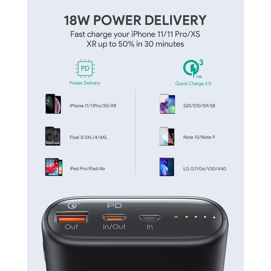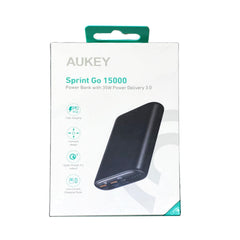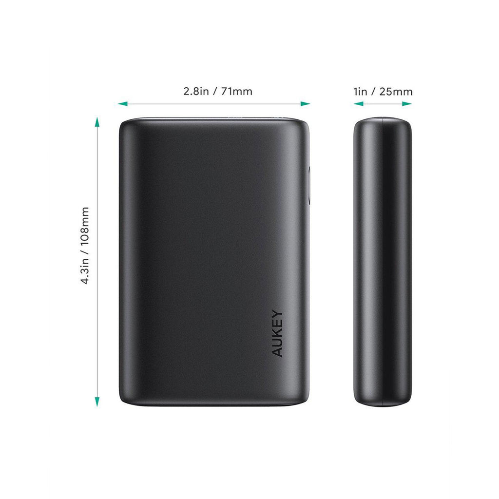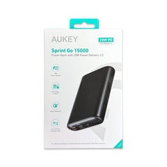 Aukey 15,000 MAH PD 20W USB-C Power Bank with USB-C TO USB-C Cable - Black