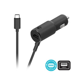 Power through your commute and fast charge 2 devices simultaneously with the TurboPower 36 Duo car charger. With an attached 18W USB-C cable and a second 18W QC3.0 port you can keep your devices going while on the road.