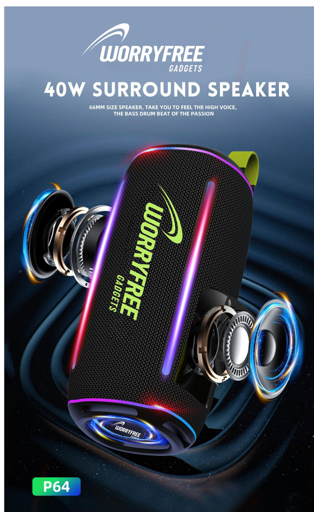 WorryFree WP64 Waterproof Bluetooth Speaker With Rgb Lights - Gray