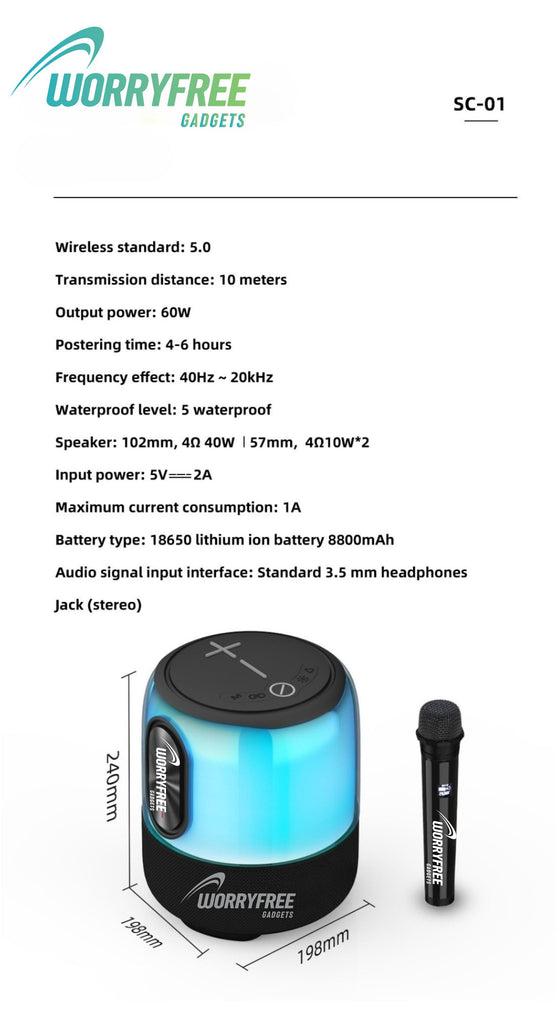 WorryFree WSC-01 Portable Bluetooth Party Speaker With Microphone - Black